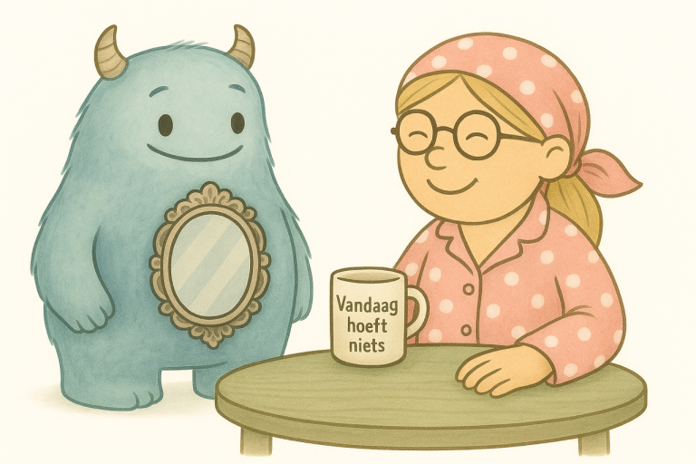 “Soms zie je iets bij een ander dat pijn doet of je boos maakt. En soms… zit er ook een stukje van jezelf in verstopt. Dit zeg ik niet om je te plagen, maar om je te laten merken: hier mag je even naar kijken.”